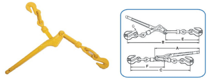 > Extra heavy construction at leverage point to prevent spreading Heel of binder toggles away from load, permitting easy release.