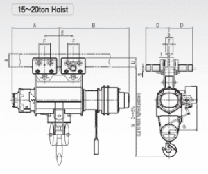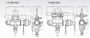 | Hoisting/Creep motor (KWXP) | 6.7/0.8X6 | 9/1.6X8/6 | 15/1.6X8/6 | 15/1.6X8/6 | ||||||||||||||
